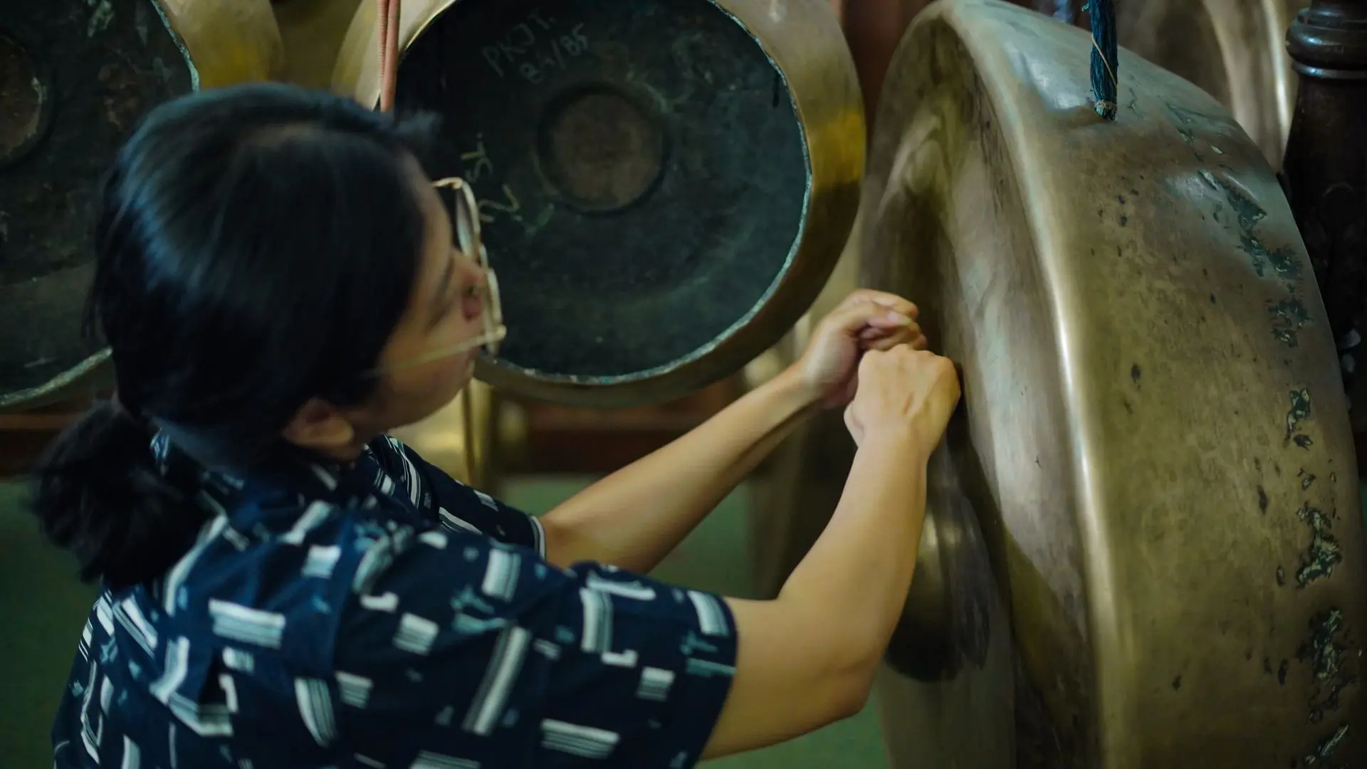 Destinasi terakhir adalah Pasar Antik Tri Windhu, ruang yang penuh benda-benda lawas, logam, kayu tua, keramik, dan mekanik antik. Di antara deretan objek yang berumur puluhan tahun itu, para peserta memburu suara-suara unik: gesekan besi, denting barang pecah, derit kursi tua, hingga getar-getar kecil yang lahir dari sentuhan spontan. Ruang ini menjadi laboratorium terbuka bagi penciptaan suara yang tak biasa.
