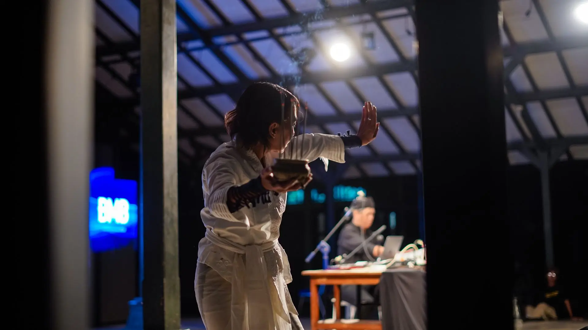 Pertunjukan dibuka oleh Ghazian Arta Fikry (Semarang) dengan rekonstruksi bunyi tonggerek, soundscape dermaga, hingga atmosfer pembangunan kota yang diproses menjadi komposisi elektroakustik. Disusul Devi Aggitaningrum (Sumedang) yang memanipulasi bunyi burung, kromong, dan kecapi hingga kehilangan identitas aslinya, membawa penonton pada lintasan bunyi yang benar-benar baru.