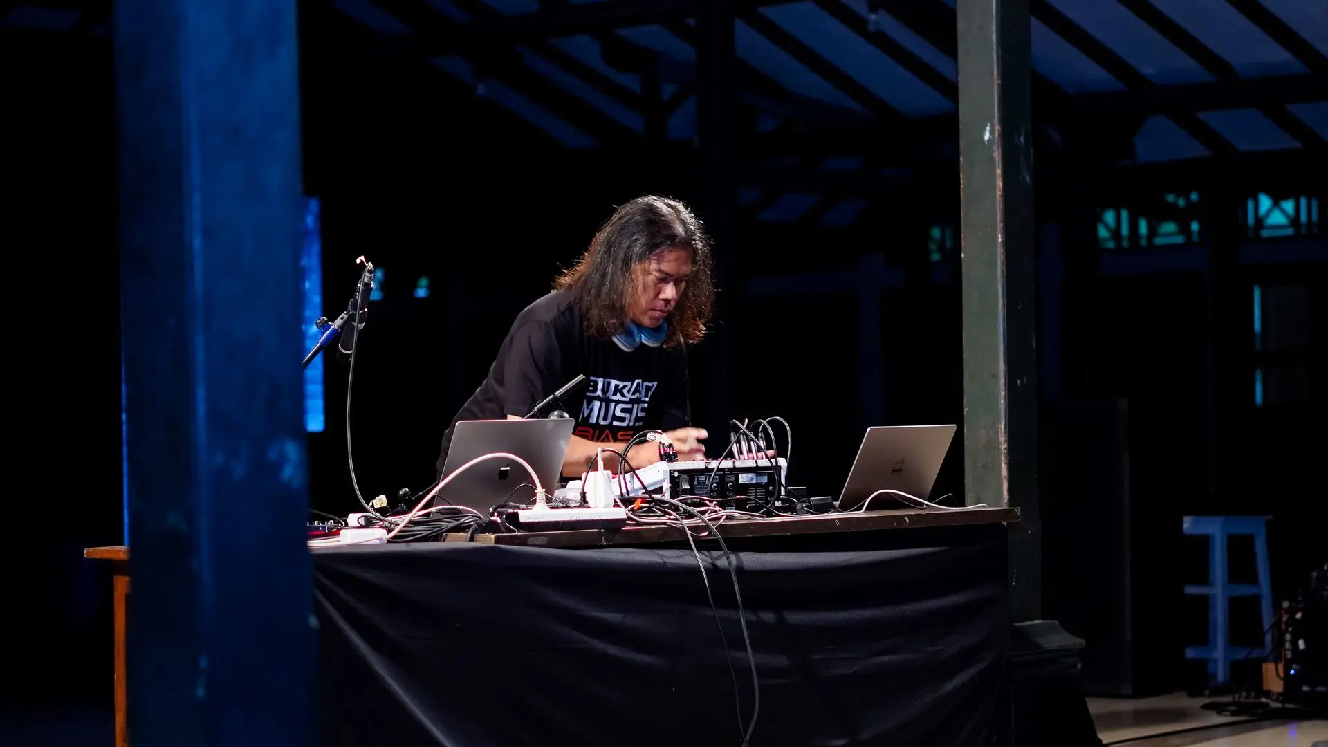 Rangkaian MTN Lab x Electroacoustic Music 2025 resmi berakhir pada Rabu malam, ditandai dengan pertunjukan showcase dan sesi dialog publik di panggung Bukan Musik Biasa (BMB), Pendhapa Wisma Seni Taman Budaya Jawa Tengah (TBJT). Sejak pagi, para peserta masih memberi sentuhan akhir pada karya komposisi mereka sebelum berpindah ke venue BMB pada siang hari untuk melakukan instalasi perangkat dan persiapan teknis.