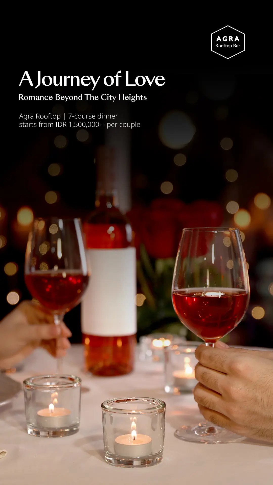 Di hari yang sama, Agra Rooftop menghadirkan pengalaman romantis lain melalui Valentine Rooftop Dinner bertajuk “A Journey of Love: Romance Beyond the City Heights.” Dengan harga mulai dari IDR 1.500.000++ per pasangan, para tamu disuguhkan makan malam tujuh hidangan ditemani panorama malam Kota Solo yang memukau dari lantai 29. Chef Haekal, Chef de Cuisine Alila Solo, menggambarkan bahwa tujuh hidangan tersebut diracik seperti sebuah perjalanan, dimulai dengan sajian pembuka yang ringan, lalu berkembang ke hidangan utama yang hangat, hingga penutup manis yang memberikan kesan akhir mendalam.