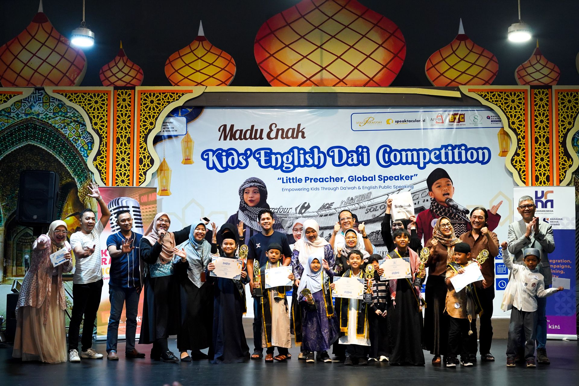 Kid’s English Da’i Competition terselenggara dengan dukungan berbagai pihak, antara lain Madu Enak, Solo Paragon Mall, Speaktacular.id, APPBI, BTC Solo, Syariah Hotel Solo, English Academy Center by Ruangguru, FourK, serta Karavan Radio FM.